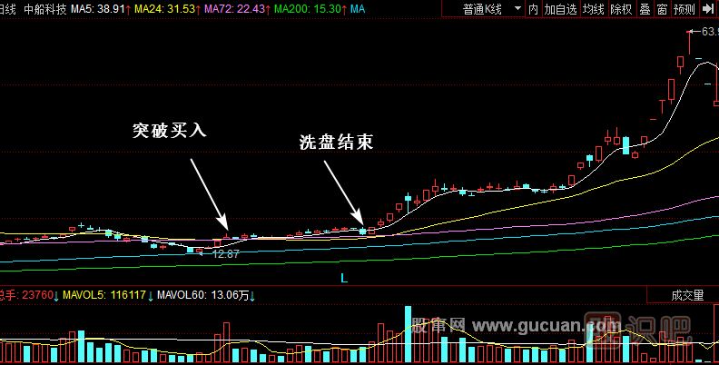 中船股份(600072)該股是黑馬股之一。在5.30暴跌過后,其均線系統(tǒng)形成了一個粘合在一起,然后發(fā)散向上的多頭排列。均線的推動變成了強烈的買入信號。股價在5日線和72日線附近橫盤在一起向上,回抽生命線之后就啟動了,這個時候就是賺錢機會,大膽買入就可以獲得利潤。股價從18元附近快速拉到28元,開始構(gòu)筑一個平臺,經(jīng)過一段時間的橫盤再次發(fā)力向上,突破30元平臺,之后連續(xù)狂飆,迅速翻倍到達63.97元。從12.87元上漲到63.97元只用了不到三個月的時間,這種快速漲4倍的股票并不多。我們要研究那些多數(shù)人沒有看到,但是主力又非常有資金實力又有魄力的,這樣的股票通常會成為超級黑馬股。牛市的大盤狀態(tài)是主力炮制翻倍黑馬的重要環(huán)境。一般股票上漲太快,很多人不敢買入。當(dāng)人們認為一定會到100元以上的時候,該股卻出現(xiàn)瘋狂地出貨。該買的時候害怕再跌就錯過了買入機會,上漲的時候就盲目信心膨脹,因為貪婪又錯過了賣出的機會。