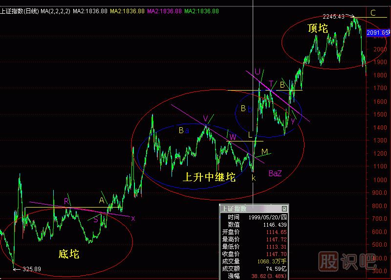 反過來說,“底坨”和“上升中繼坨”的向上“坨突破”,對滿倉的股民來說,盈利是巨大的。“底坨”和“上升中繼坨”的向上“坨突破”是有明顯特征的,是可以認(rèn)識和預(yù)報的。經(jīng)過訓(xùn)練的股民,不僅可以捕捉大行情的底部,還可以捕捉每個短期行情的底部。其竅門就是用60分鐘k線圖代替日K線圖。60分鐘K線的“大底部”,實際上是日K線的短期行情底部。