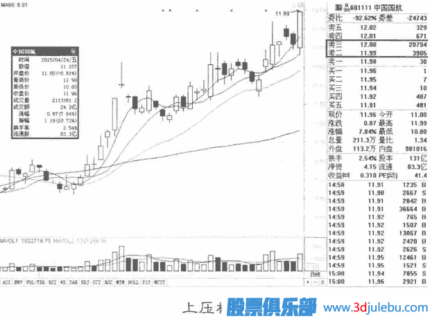 在報價欄里出現大量的賣單而少量的買單現象,俗稱“上壓板”。如果空頭真要出貨,往往不會掛在報價欄里,即使其大賣單只成交了部分而剩余的掛在賣單上檔處,也會馬上撤單,重新照現有