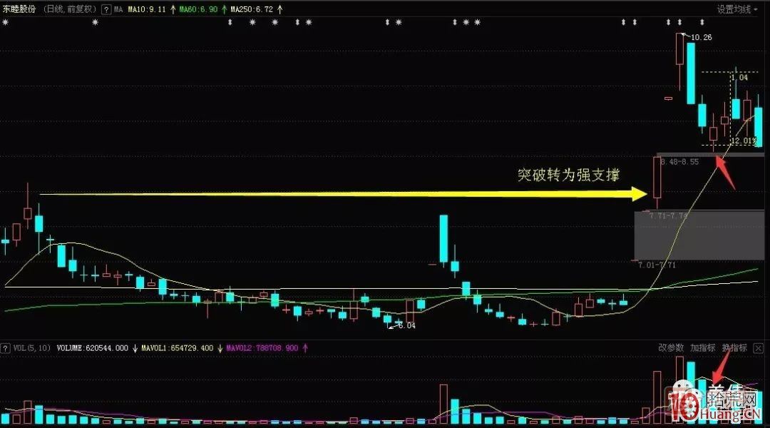 上漲為5連板,3板放量突破前高區(qū)間,轉(zhuǎn)為強(qiáng)支撐,為潛在的回踩位置。