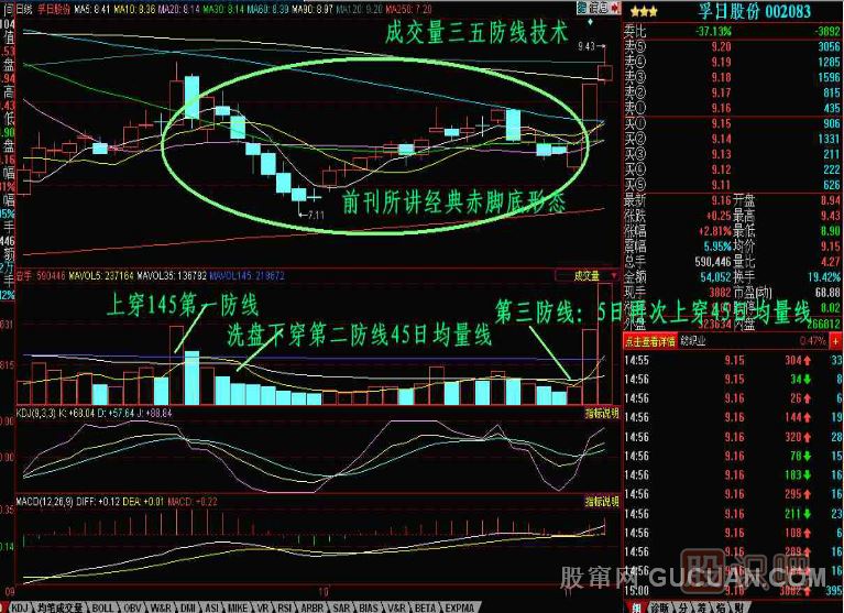 成交量的“三五防線”:145、45、5日均量線,都帶“5”,簡(jiǎn)稱之為“三五防線”
