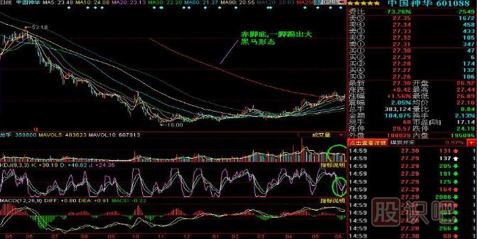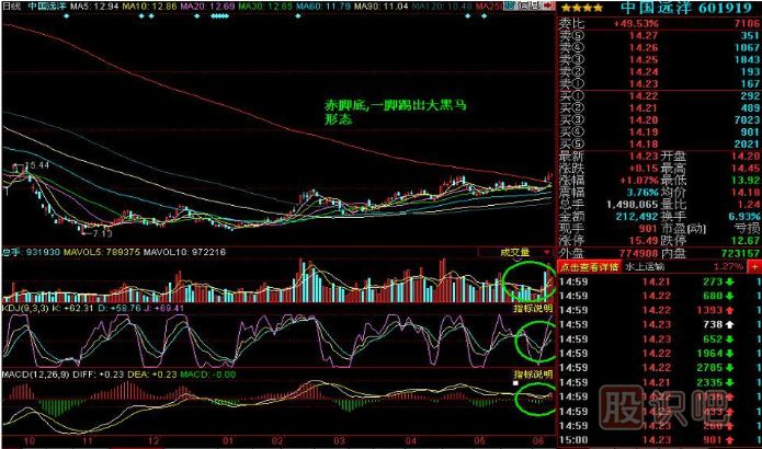 1.股價(jià)持續(xù)下跌半年或一年以上,跌幅50%一60%乃至70%以上,赤腳底有其形成機(jī)理。莊家往往在下跌后期有一個(gè)加速趕底的動(dòng)作,快速跌到底部后就形成了腳跟,因?yàn)榭焖傧碌笥?a href=http://m.srlcfj.com/GPRM/sy/1792.html target=_blank class=infotextkey>反彈,反彈到中長(zhǎng)期均線(在此處一般指的是60日均價(jià)線,也可半年線或年線)處必然遇阻回落,之后股價(jià)在中長(zhǎng)期均線的壓制下逐步走低,此時(shí)的中長(zhǎng)期均價(jià)線就像腳背,股價(jià)的回落能夠不創(chuàng)新低,最后股價(jià)的活動(dòng)空間越來(lái)越小,如果曾有莊家在足部區(qū)間建倉(cāng)的話,此時(shí)往往會(huì)放量突破各種均線(從腳趾上飚起)而走出一段上揚(yáng)行情。赤腳底的關(guān)鍵是腳下一定要放量,而且最好是底部逐漸抬高,這樣才是健康的腳,底部都不抬高的,那就不是赤腳底了,可能演變?yōu)閳A底等其它形態(tài)了。量是關(guān)鍵點(diǎn),量縮放要有規(guī)律,除了腳底要有量,還有突破腳趾頭時(shí)也要放量,還有一個(gè)關(guān)鍵點(diǎn)就是股價(jià)盤整到腳趾頭那個(gè)位置時(shí)必須各種中短期均線平收斂存一起,那才是最有力的腳趾頭,只要有量的配合就容易飆升。