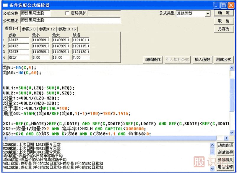 (圖示: 游資黑馬選股公式截圖)