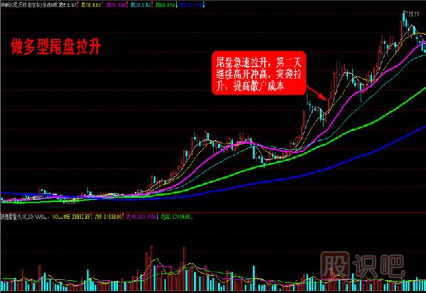 做多型拉升往往是指莊家在建倉完畢后,計劃快速拉升,以迅速脫離成本區(qū),讓更多的散戶在更高的價格才能夠吃到貨,采用尾盤急速拉升的手法,多見于上漲階段。