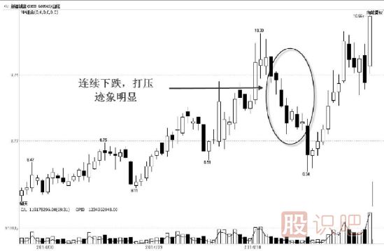 從分時走勢來看,如果分時走勢在開盤后半小時左右急速走高,隨后開始回落,股價持續(xù)下跌,且這種走勢出現(xiàn)在股價低位時,或出現(xiàn)在股價見底之后、企穩(wěn)回升時,則可能是主力在洗盤。
