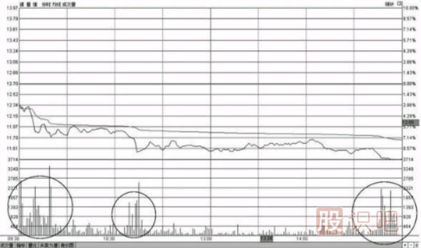 股票指標技術分析強調分時圖早盤出現(xiàn)大賣盤放量打壓下跌形態(tài)的操盤技巧