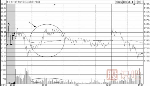股票k線技術(shù)分析表述分時(shí)圖走勢(shì)中的放量回調(diào)賣出形態(tài)