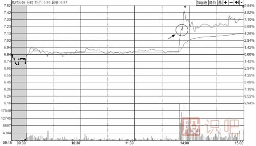 騰訊股票技術(shù)分析試談分時(shí)圖買點(diǎn)-放量突破平臺(tái)后的大漲買入法