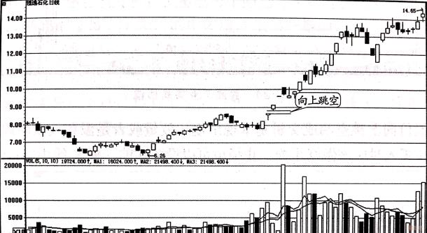 (2)股價向上跳空的成交量是呈現(xiàn)出逐步放量或者是溫和放量的現(xiàn)象。