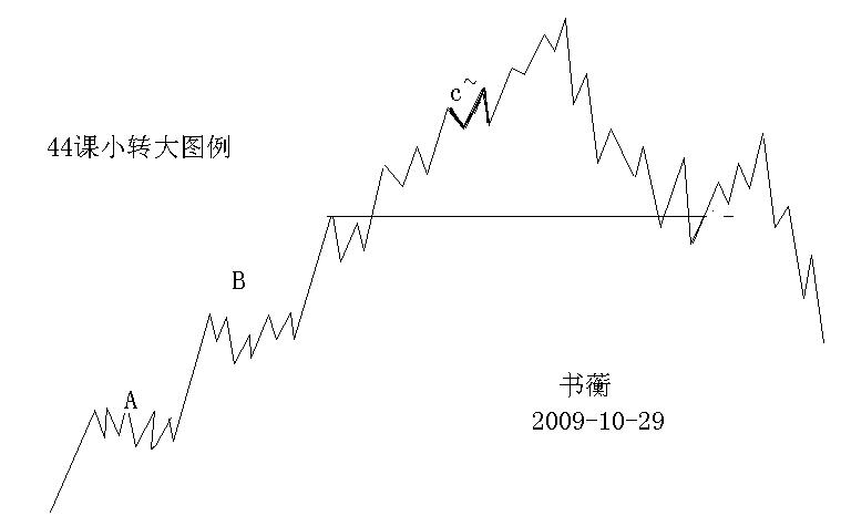 有了上一課,對“背馳級別等于當(dāng)下的走勢級別”這最一般的情況,應(yīng)該是很好把握了,唯一可能出現(xiàn)困難的,就是“背馳級別小于于當(dāng)下的走勢級別”這種情況,也就是所謂的小級別轉(zhuǎn)折引發(fā)大級別轉(zhuǎn)折,對這種情況,還要進行進一步的分析。